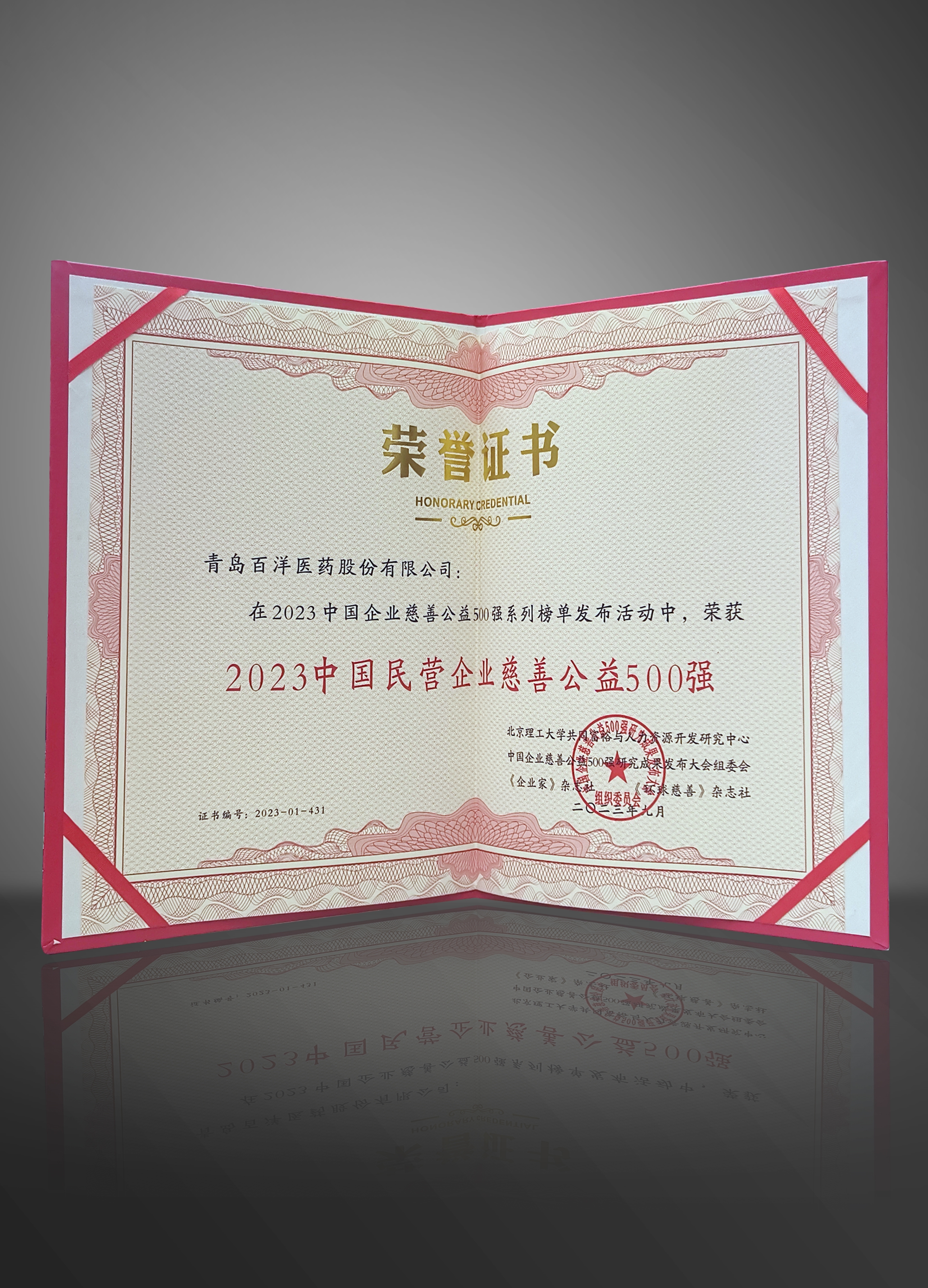 • 2023年凯时尊龙医药荣获中国民营企业慈善公益500强